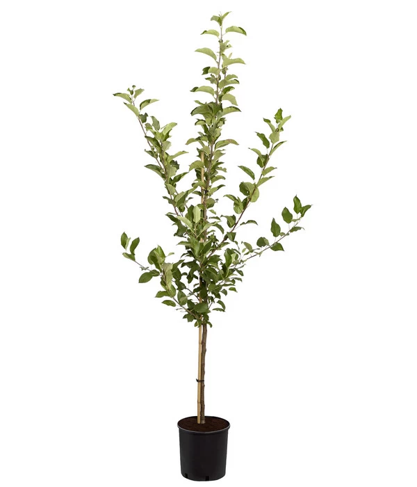 Das Apfel-Duo ‘Jonagold‘/‘Elstar‘ besitzt eine schwach wachsende Unterlage, so dass der Baum nur eine Höhe von 3,5 m erreichen wird, bei einer Breite von ca. 2,5 m. Der Wuchs ist breit aufrecht, mit einer pyramidenförmigen, locker verzweigten Krone. Noch ein Vorzug: Die Sorten sind so aufeinander abgestimmt, dass sie sich gegenseitig sicher befruchten und ein regelmäßiger Ertrag sicher ist, auch ohne einen zweiten oder dritten Apfelbaum im Garten.