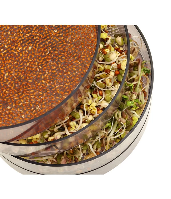 In einer Keimsprosse steckt die gebündelte Kraft des Samenkorns. Die Keimlinge von Radieschen, Bockshornklee und Co. sind sehr wohlschmeckend und bereichern unsere Speisen mit vielen gesunden Nährstoffen. Sie im Supermarkt zu kaufen ist eher lästig, deren Frische oft zweifelhaft. Wer hingegen ein Dehner Sprossenhaus besitzt, kann sich stets absolut frisch und bequem bedienen, wenn Salat oder Gemüse mit den köstlichen Keimen aufgepeppt werden sollen. Es verfügt über 4 geräumige Schalen, die sich aufeinander stapeln lassen. Die Anzahl der Schalen kann je nach Belieben geändert werden. Der Deckel sorgt fürs passende Treibhausklima und die unterste Schale fängt überschüssiges Wasser auf, damit es entsorgt werden kann. Das Dehner Sprossenhaus wurde aus hochwertigem, klarem Kunststoff gefertigt und kann zur Reinigung sogar in die Spülmaschine. Außerdem ist sie frei von Bishphenol A.