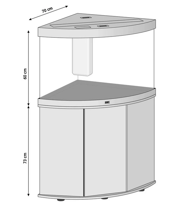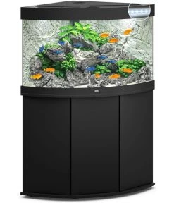 Mit der JUWEL® AQUARIUM Kombination Trigon 190 LED holen Sie sich ein modernes Aquarium kombiniert mit dem passenden Unterschrank zu sich nach Hause. Die JUWEL® AQUARIUM Kombination Trigon 190 LED besticht mit Ihrem edlen Design, der gewölbten Frontscheibe und vor allem aber mit seiner modernen, dreieckigen Form passt sich das Komplettset jedem Wohnstil an und verwandelt jede Zimmerecke in einen dekorativen Blickfang. Hier bekommen Sie neben dem Eck-Aquarium mit passendem Unterschrank gleich eine energiesparende LED-Beleuchtung, ein Filtersystem und Heizer mit dazu. Dank des Fassungsvermögens von 190 Litern können Sie sich somit eine einzigartige Unterwasserlandschaft zaubern.