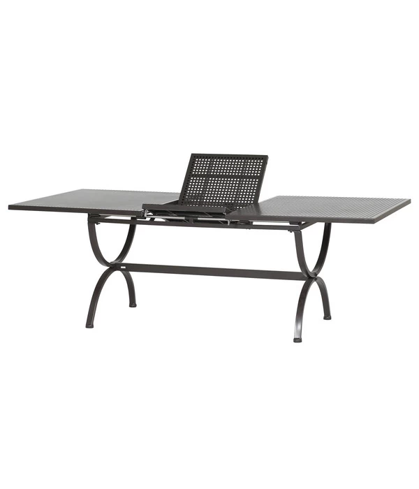 Von Hand geschmiedetes Eisen, das 2-fach galvanisch verzinkt und zusätzlich pulverbeschichtet wurde – das sind die qualitativen Merkmale, die dem MBM Ausziehtisch Romeo beste Outdoor-Eigenschaften verleihen. Die schützende Deckschicht aus transparentem Pulverlack wird sogar bei 225 Grad eingebrammt, so dass der Gartentisch über eine besonders hohe Widerstandsfähigkeit und Langlebigkeit verfügt. Und Wetterfestigkeit heißt im Detail, dass der Tisch sowohl Hitze wie Kälte unbeschadet übersteht und außerdem wasserfest ist. Und um das Glück perfekt zu machen: Er ist außerdem absolut pflegeleicht.