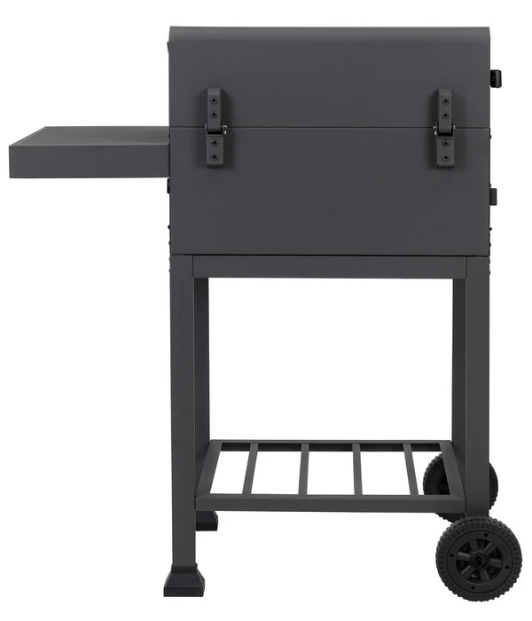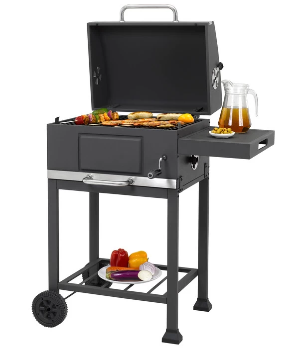 Zu einem entspannten Sommertag gehört einfach ein gelungenes Grillerlebnis im Kreise der Familie oder Freunde. Als ideale Grundlage hierzu dient der schicke Holzkohlegrill Toronto Basic aus dem Hause tepro. Er lässt sich dank der komfortablen Räder und des Wagengriffes zügig positionieren. Zudem besitzt er eine Seitenablage, die platzsparend eingeklappt werden kann und Ihnen bei Bedarf als perfekte Fläche für Utensilien dient. So haben Sie beim Zubereiten leckerer Speisen Ihren Pfannenwender oder ähnliche Hilfsmittel stets griffbereit. Auch das marinierte Gemüse und andere Köstlichkeiten sind so schnell erreichbar, um sie auf der großzügigen Grillfläche mit Rosteinsatz des tepro Holzkohlegrills Toronto Basic aufzulegen.